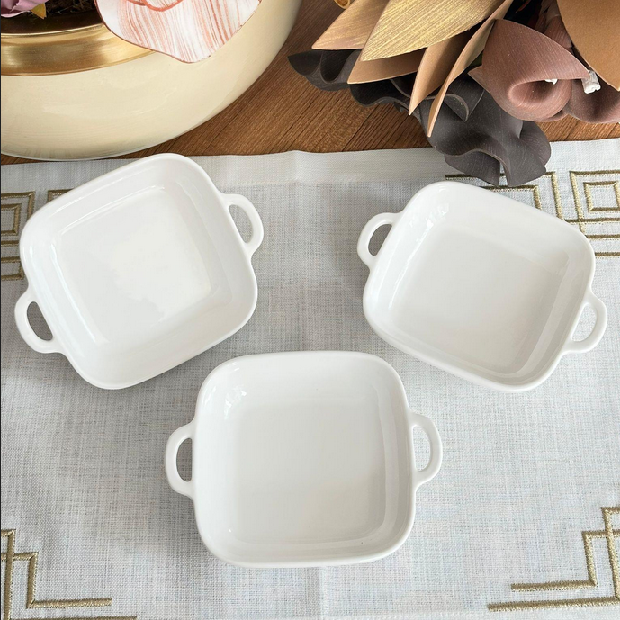 „Bella“ Schalen 3 Stück Maße: ca. 15cm x 11,8cm Höhe: ca. 3,5cm Material: Porzellan für den Ofen geeignet Spülmaschinen geeignet
