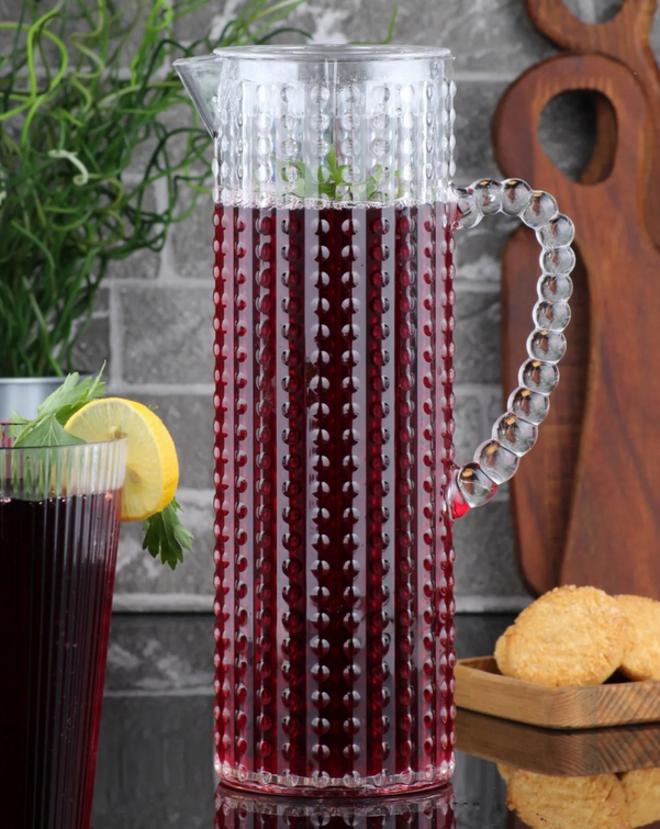 „Boncuk“ Karaffe 1 Stück Volumen: ca. 1500cc Durchmesser: ca. 9,5cm Höhe: ca. 28,5cm Material: Acryl