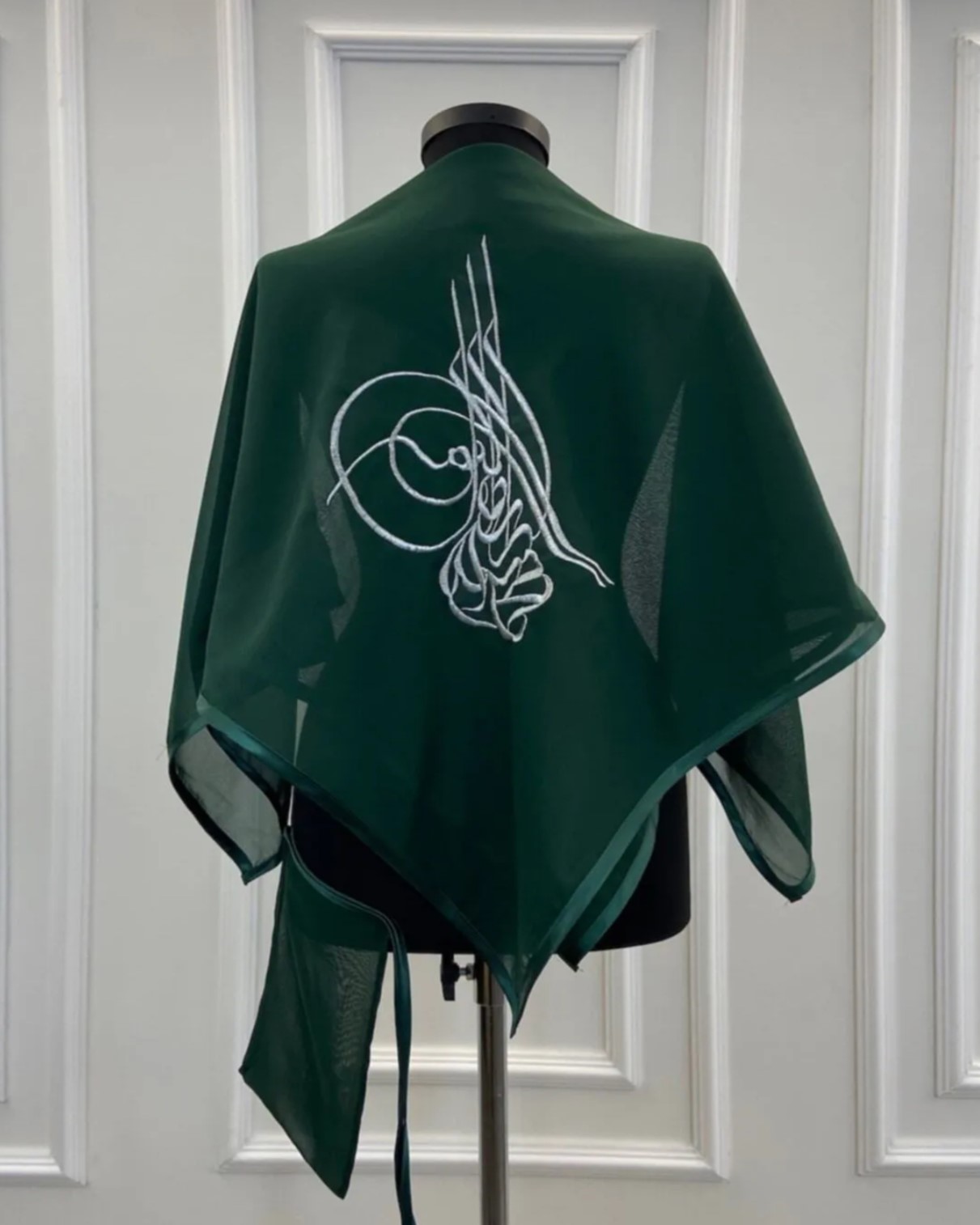 Bräutigam Schultertuch „Tugra“ 2 teilig 1x Schultertuch 1x Handschuh Maße Tuch: ca. 100cm x 100cm Material: Chiffon