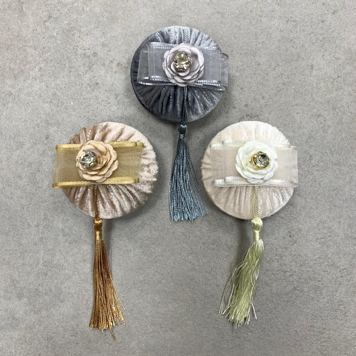 Duftseife 1 Stück Durchmesser: ca. 7cm Farbe: Grau / Creme / Beige Füllung: Seife mit Duft im Samtmantel mit Quaste