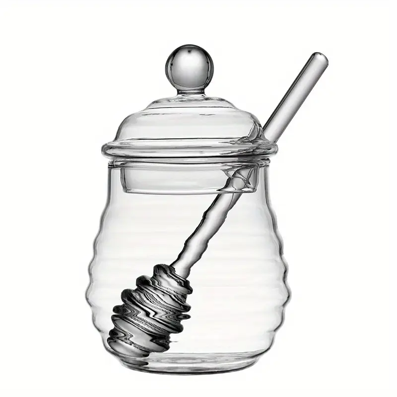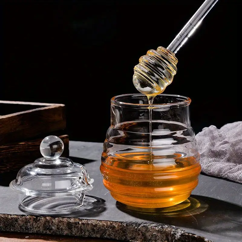 „Honey“ Honigglas mit Rührstab 1 Stück Volumen: ca. 280cc Höhe: ca. 13cm Material: Glas Spülmaschinen geeignet