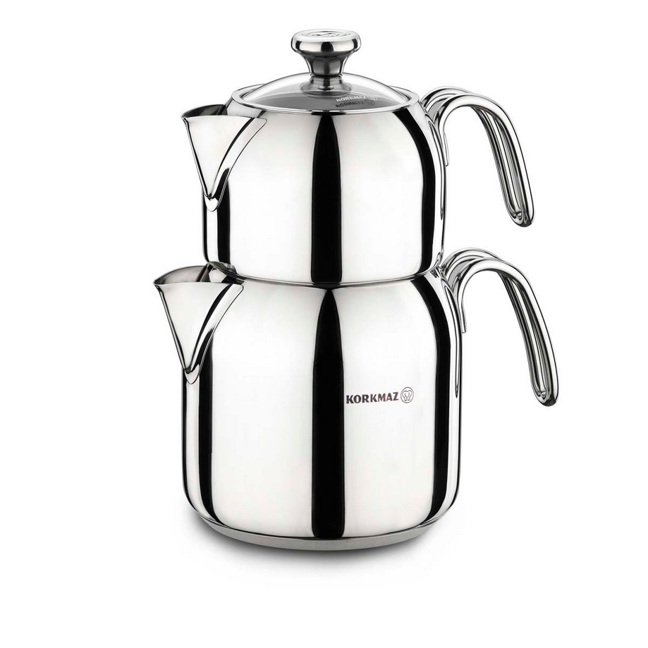Korkmaz “Alia” Volumen: ca. 0,9L / 2L Material: 18/10 Cr-Ni Edelstahl Farbe: Silber Geeignet für alle Herdarten, inkl. Induktion