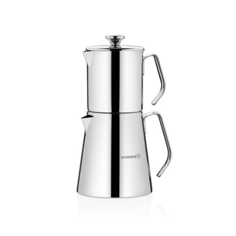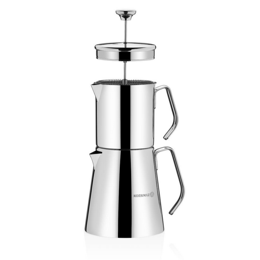 Korkmaz „Aqua“ Volumen: ca. 0,8L / 1,5L Material: 18/10 Cr-Ni Edelstahl Farbe: Silber French Press Funktion Geeignet für alle Herdarten, inkl. Induktion