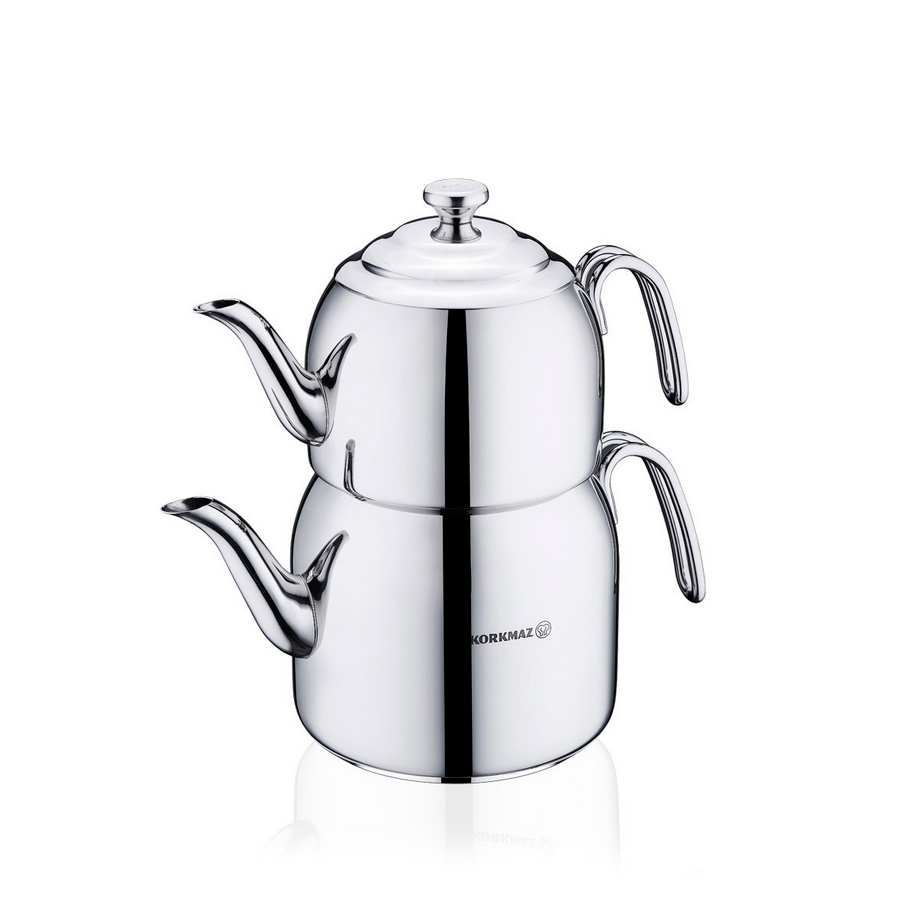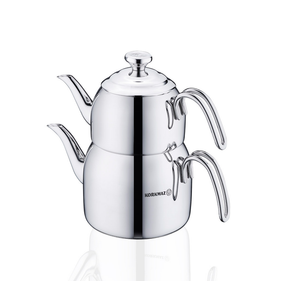 Korkmaz “Droppa Maxi” Volumen: ca. 1,1L / 2,3L Material: 18/10 Cr-Ni Edelstahl Farbe: Silber Geeignet für alle Herdarten, inkl. Induktion