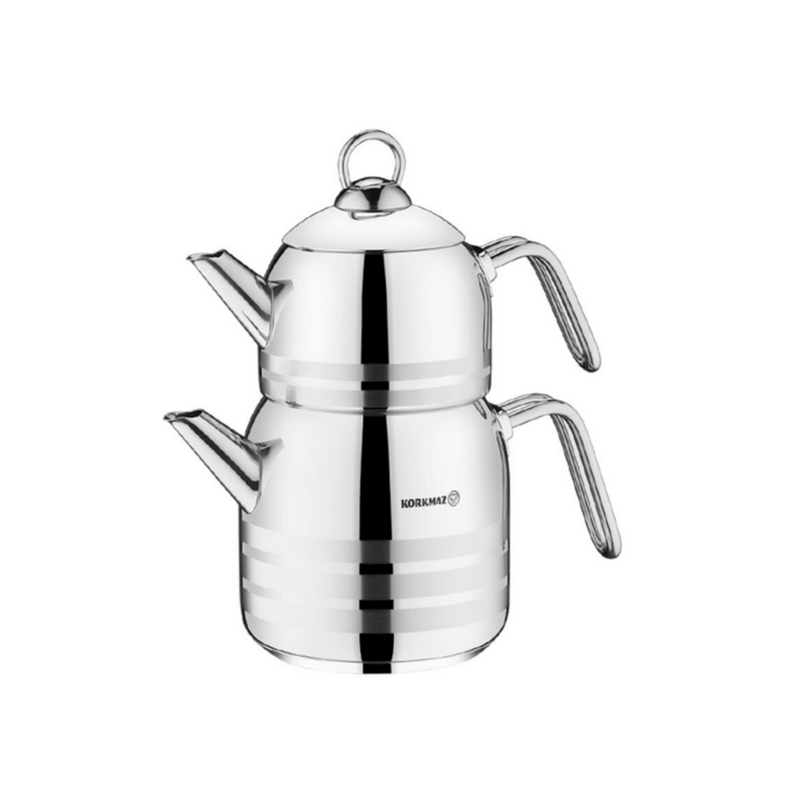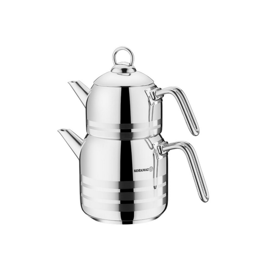 Korkmaz „Mega“ Volumen: ca. 1,3L / 3L Material: 18/10 Cr-Ni Edelstahl Farbe: Silber Geeignet für alle Herdarten, inkl. Induktion