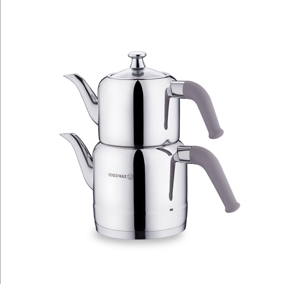 Korkmaz „Riva“ Volumen: ca. 1,1L / 1,9L Material: 18/10 Cr-Ni Edelstahl Farbe: Silber Geeignet für alle Herdarten, inkl. Induktion