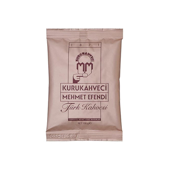 „Kurukahveci Mehmet Efendi“ Türkischer Mokka 1 Stück Net: 100g 100% Arabica-Bohnen Sehr kräftig und aromatisch Dunkel geröstet und staubfein vermahlen