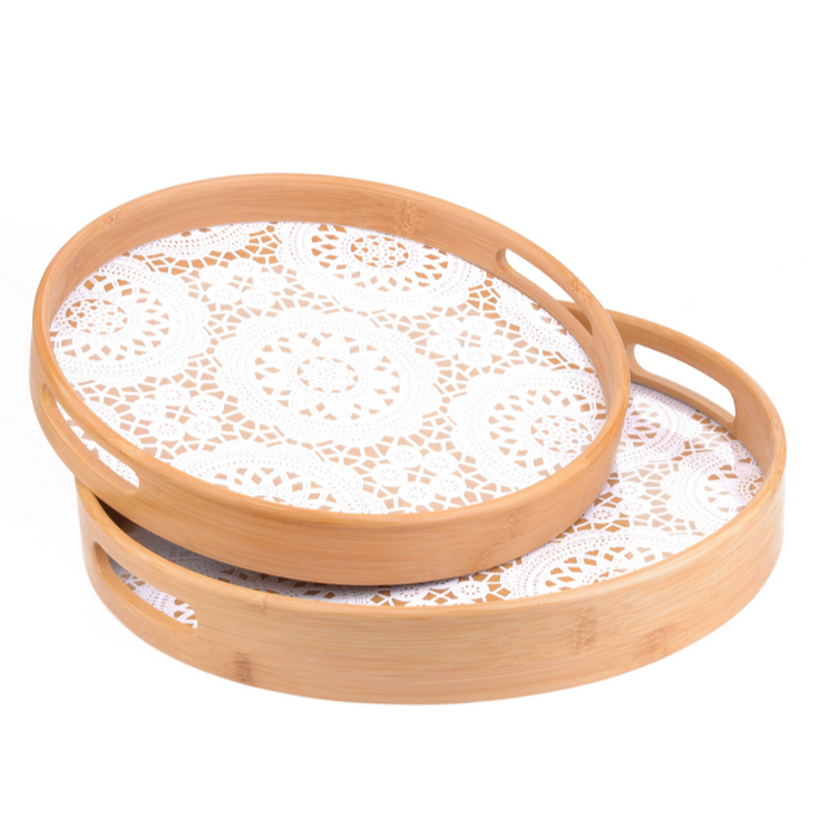 Mien „Dantel“ 2er Set Form: Rund Durchmesser: ca. 35cm / 30cm Material: Bambus nicht Spülmaschinen geeignet
