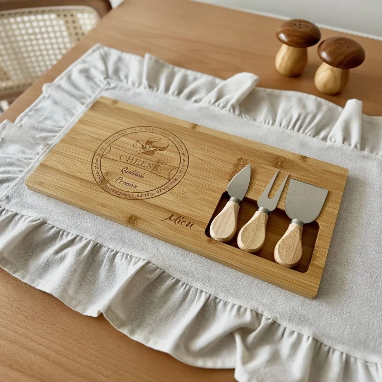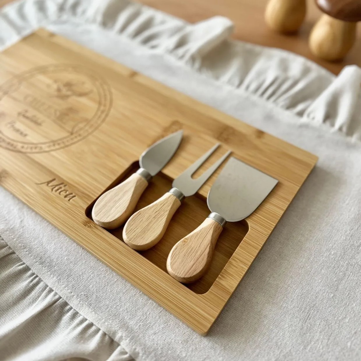 „Mien“ Käsebrett 4 teilig 1x Käsebrett 3x Käsemesser Maße: ca. 37,5cm x 18,5cm Material: Bambus