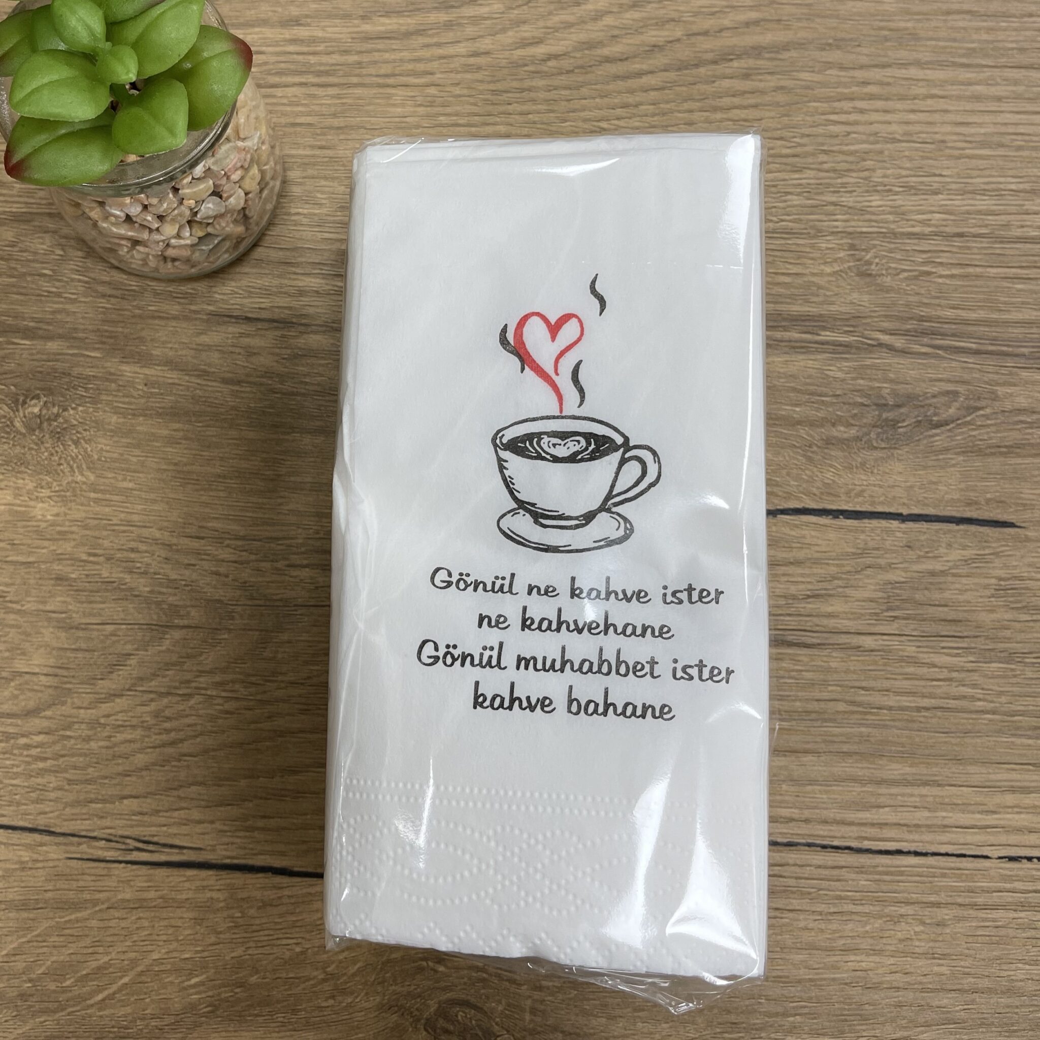Motiv Servietten 50 Stück Einweg Servietten Maße: ca. 16cm x 8cm Material: Papier „Gönül ne kahve ister, ne kahvehane. Gönül muhabbet ister, kahve bahane“