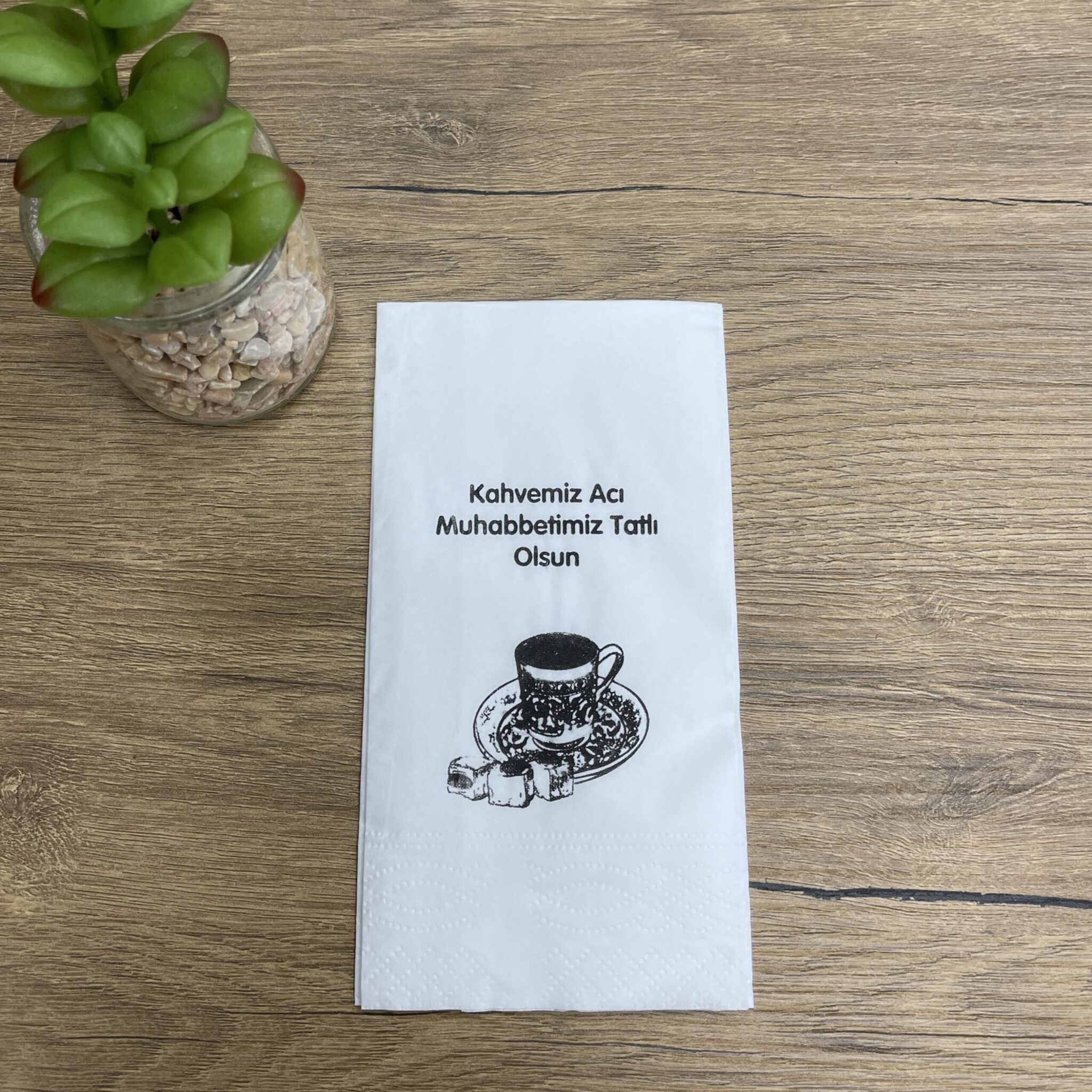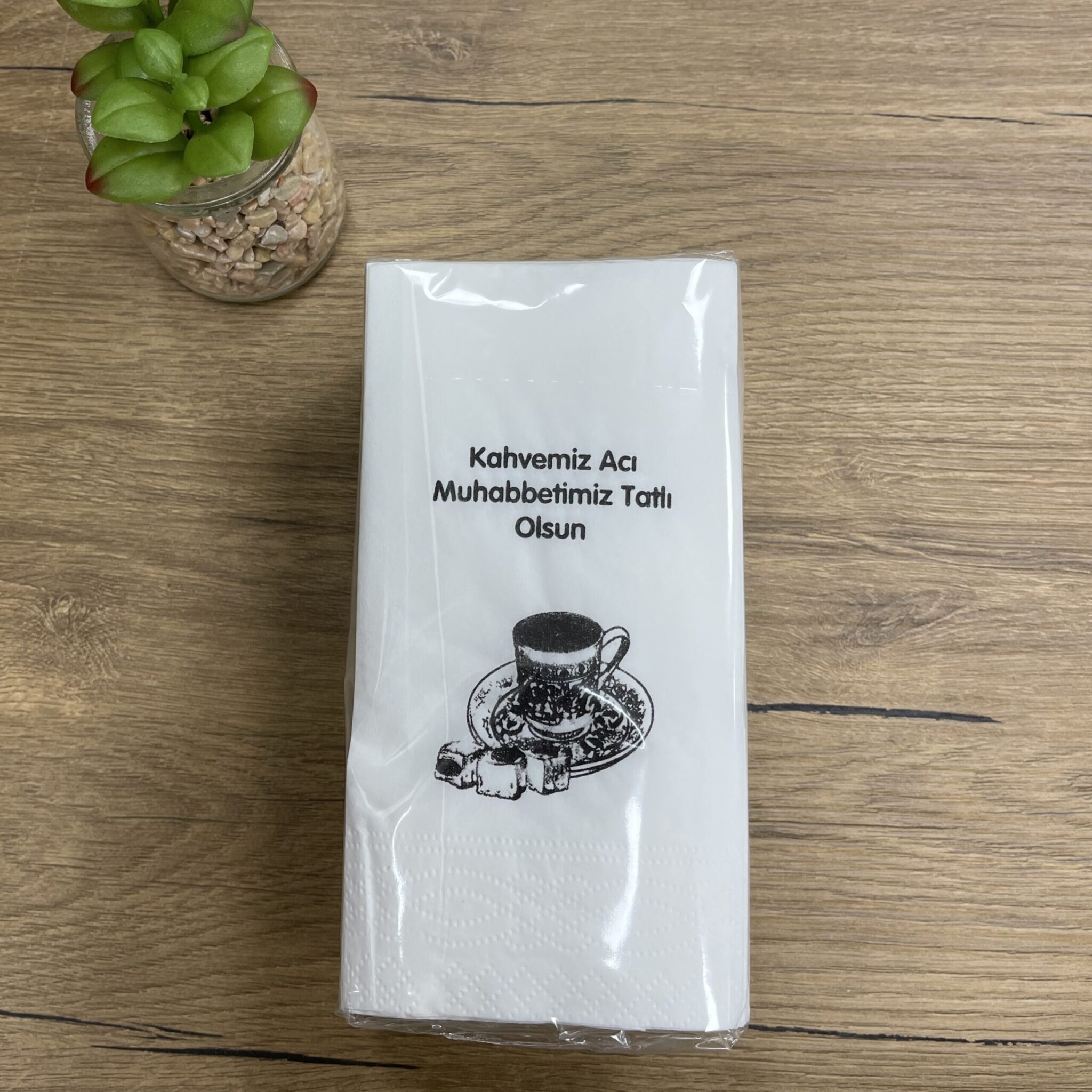 Motiv Servietten 50 Stück Einweg Servietten Maße: ca. 16cm x 8cm Material: Papier „Kahvemiz aci, muhabbetimiz tatli olsun“