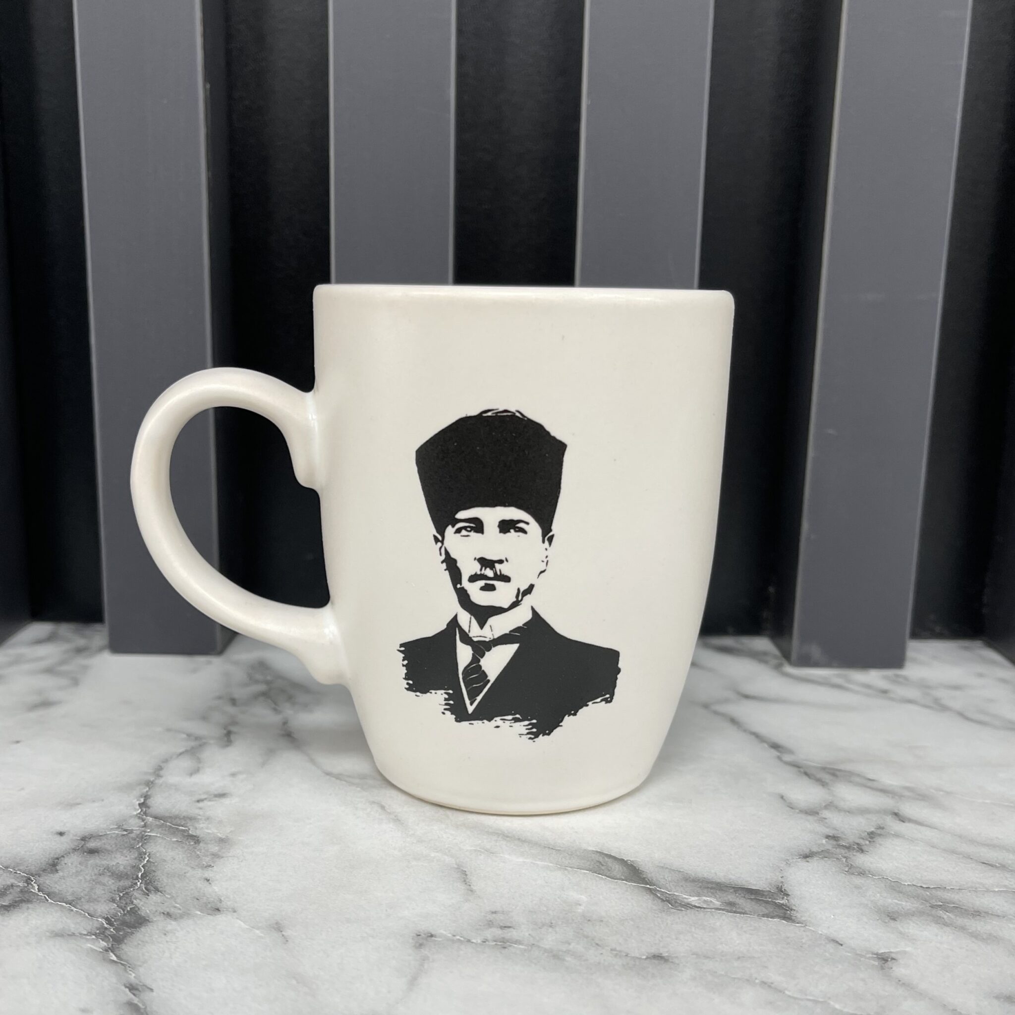 Motiv Tasse „Atatürk“ 1 Stück Volumen: ca. 300cc Höhe: ca. 9,5cm Durchmesser: ca. 8cm Material: Keramik Handmade