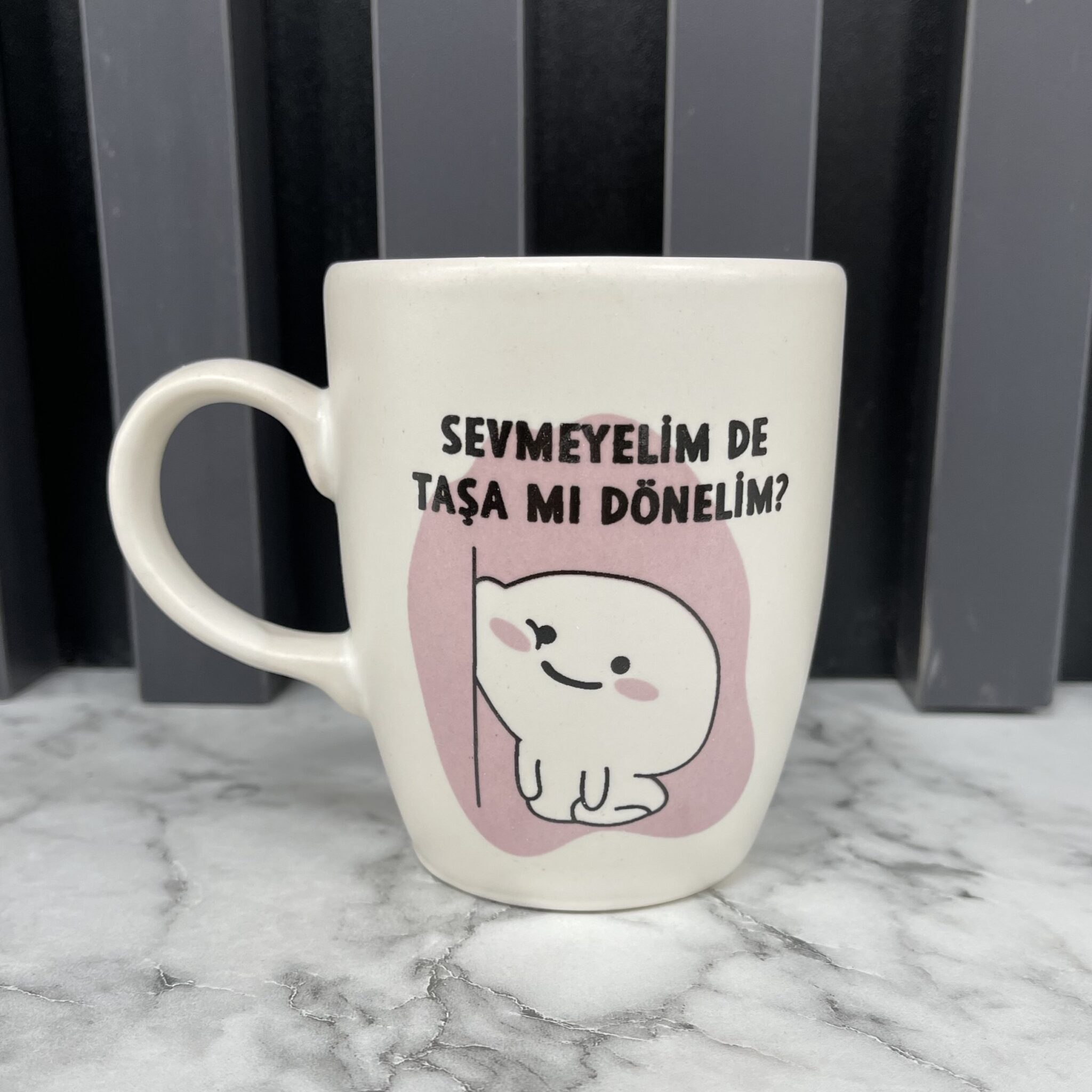 Motiv Tasse „Sevmeyelim de tasa mi dönelim?“ 1 Stück Volumen: ca. 300cc Höhe: ca. 9,5cm Durchmesser: ca. 8cm Material: Keramik Handmade