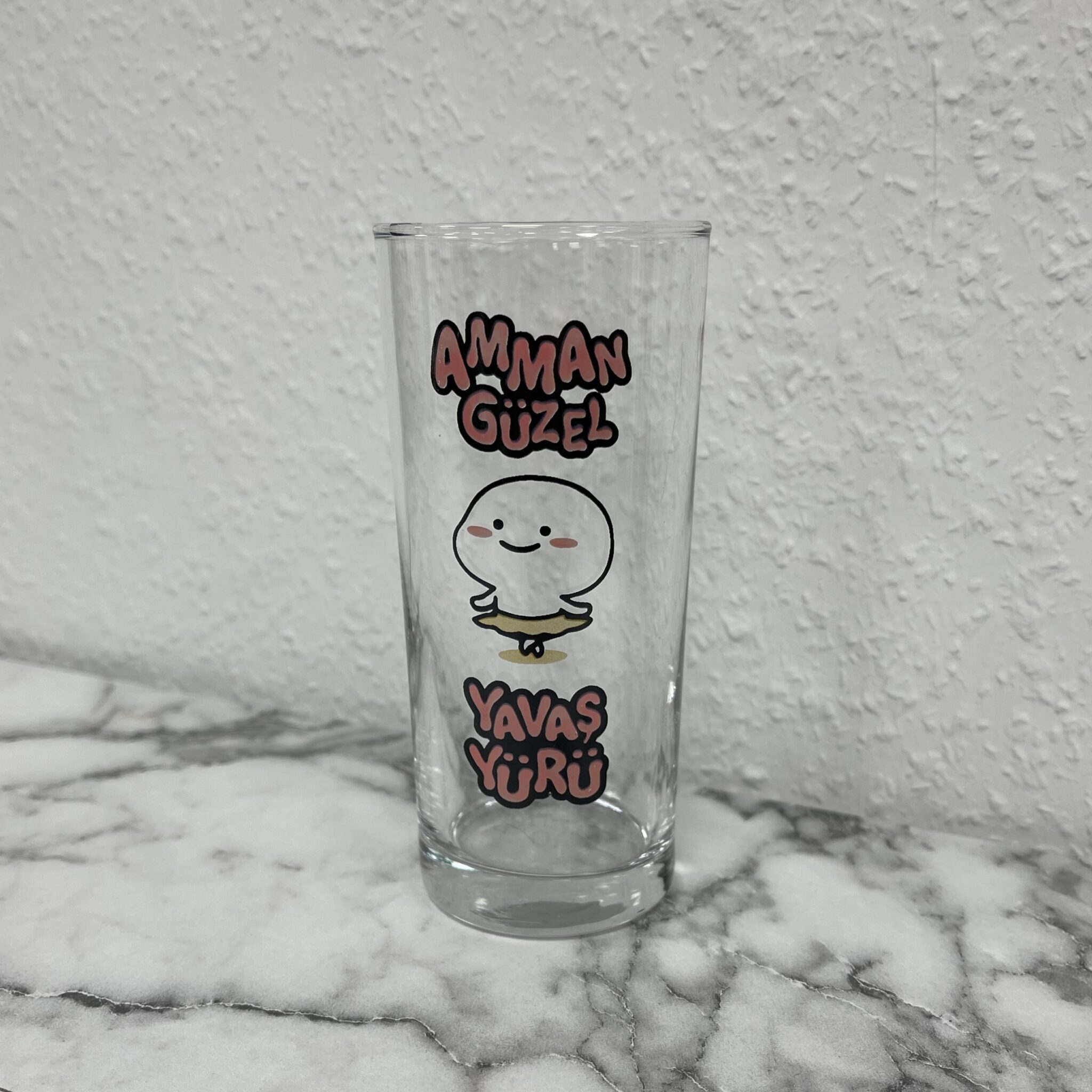 Motiv Trinkglas „Amman güzel yavas yürü“ 1 Stück Volumen: ca. 190cc Höhe: ca. 12cm Material: Glas „Amman güzel yavas yürü“