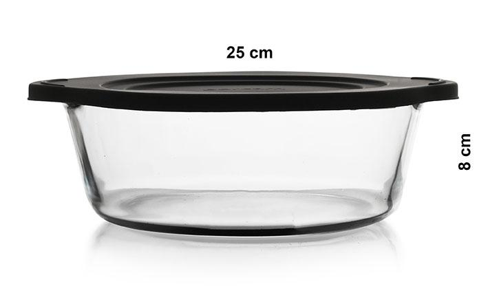 Pasabahce “Borcam” 1 Stück Volumen: ca. 2200cc Durchmesser: ca. 22cm Höhe: ca. 8cm Material: Glas/Kunststoff Spülmaschinen geeignet für den Ofen geeignet (ohne Deckel)