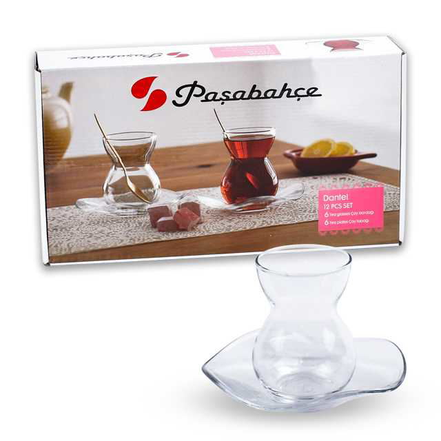 Pasabahce „Dantel“ 12 teilig 6x Teegläser 6x Unterteller Volumen: ca. 120cc Material: Glas Spülmaschinen geeignet