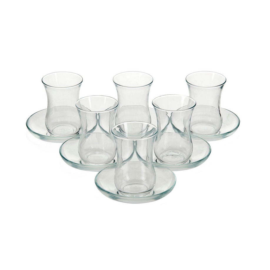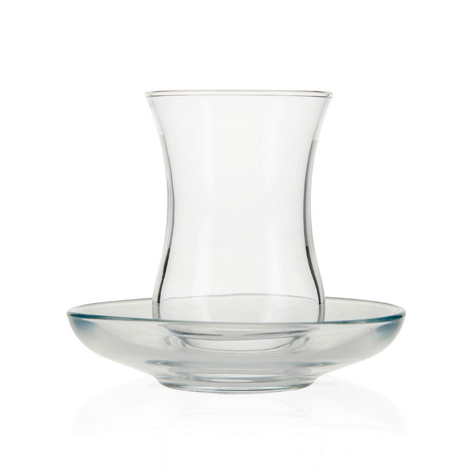 Pasabahce “Üsküdar” 12 teilig 6x Teegläser 6x Unterteller Volumen: ca. 120cc Höhe: ca. 8,5cm Durchmesser Unterteller: ca. 10,2cm Material: Glas Spülmaschinen geeignet