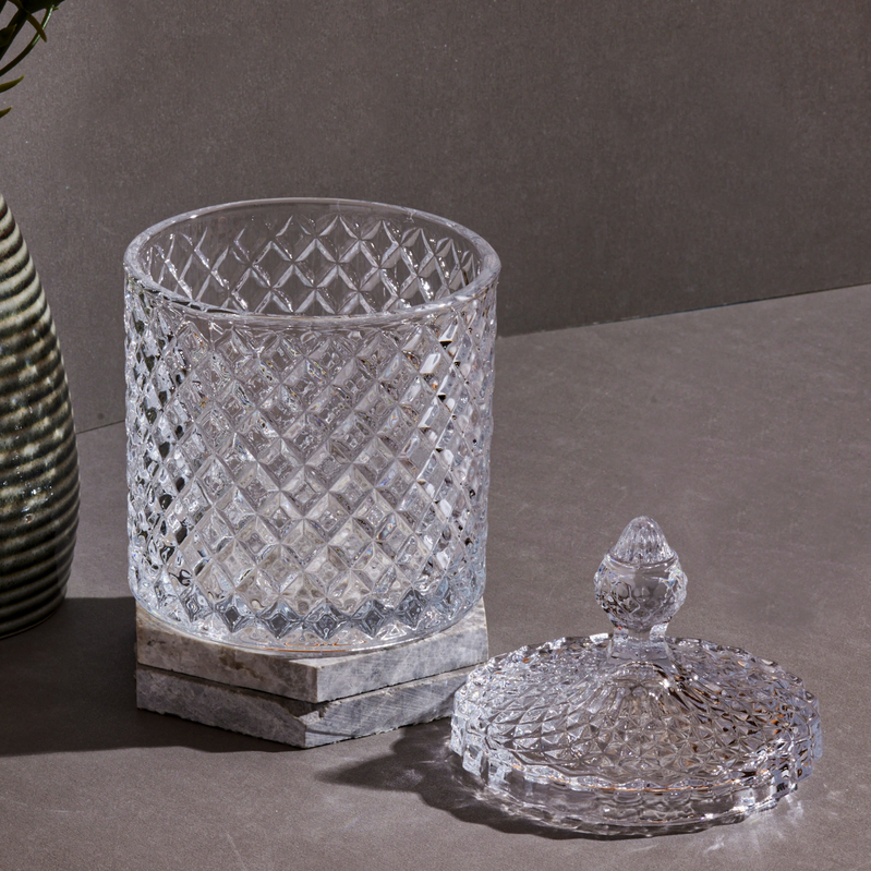 Perotti „Diamond“ 1 Stück Höhe: inkl. Deckel ca. 17cm Durchmesser: ca. 10cm Material: Glas Spülmaschinen geeignet