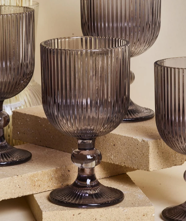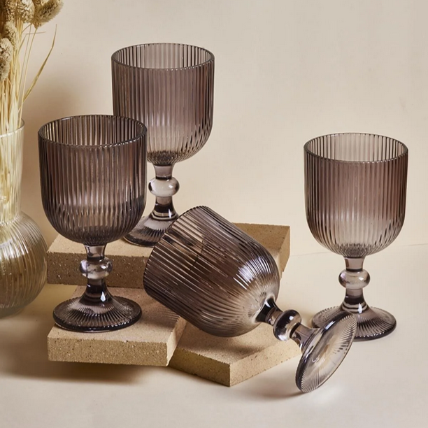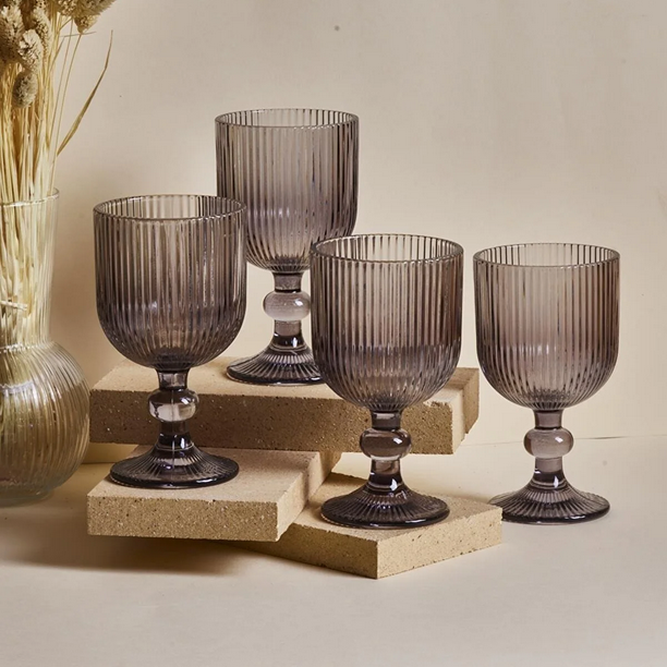Perotti „Imola Smocked“ 4 Stück Volumen: ca. 260cc Durchmesser: ca. 7,9cm Höhe: ca. 14,4cm Material: Glas Spülmaschinen geeignet