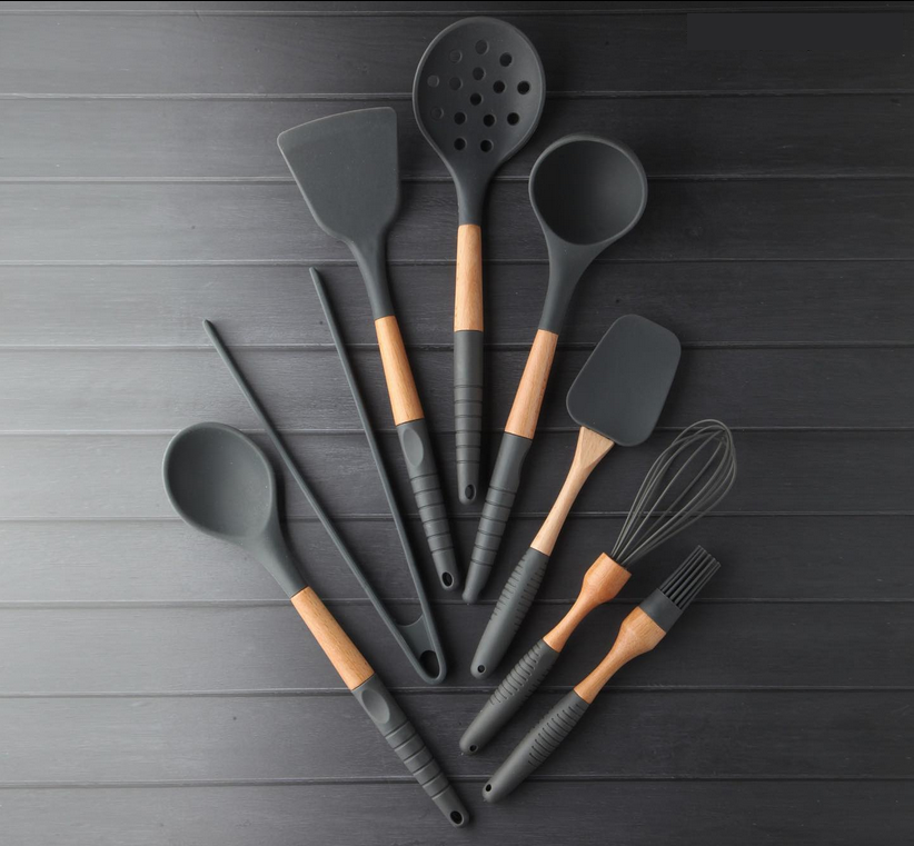 Perotti „Maestro“ 8 teilig Material: Silikon/Bambus Farbe: Grau Spülmaschinen geeignet