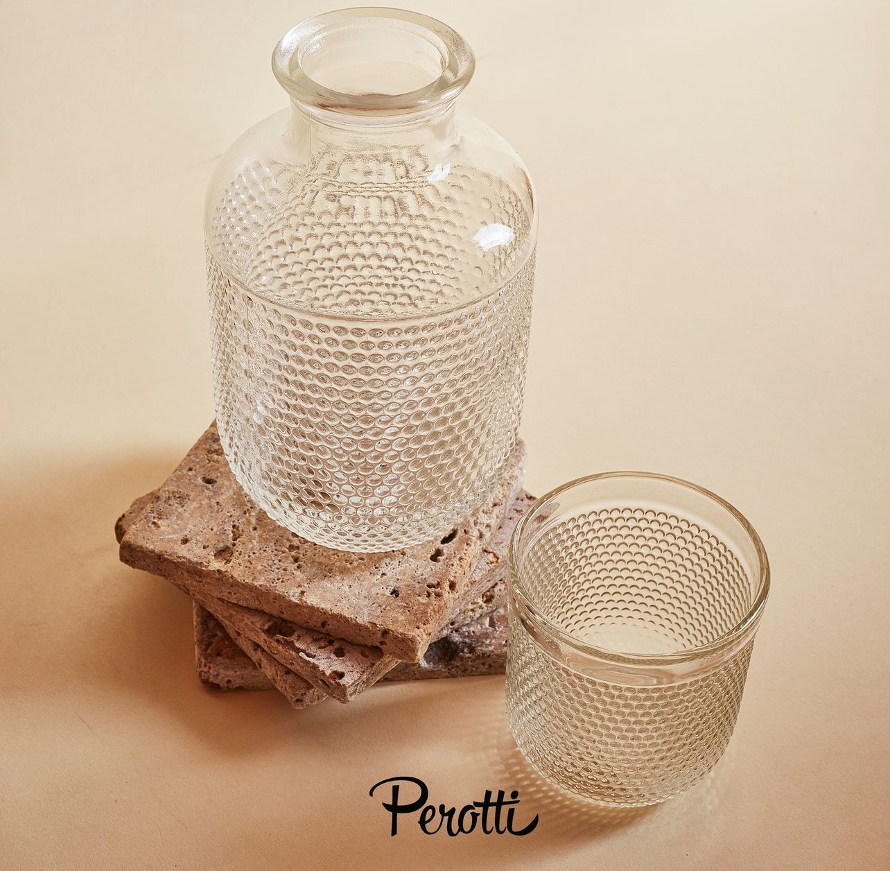 Perotti „Morry“ 2 teilig 1x Karaffe 1x Glas Volumen: ca. 325cc Höhe: ca. 20cm Material: Glas Spülmaschinen geeignet