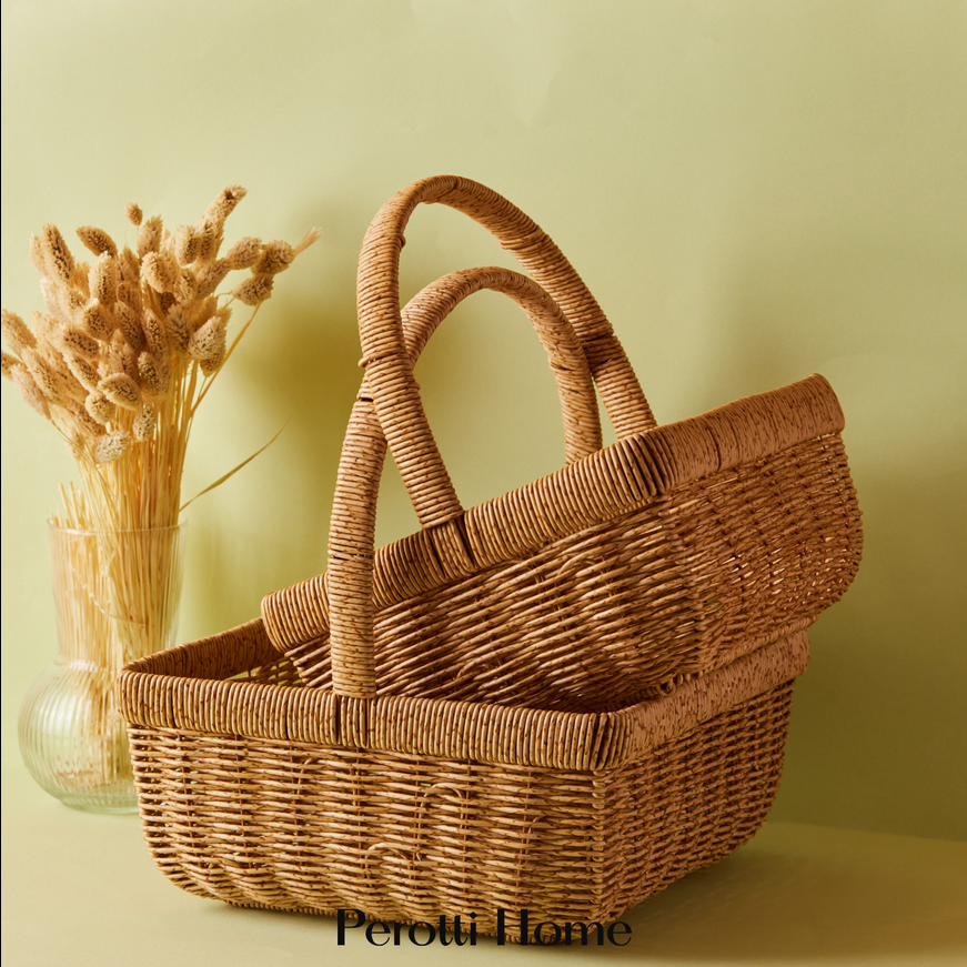„Rattan“ Korb 1 Stück Größe: klein / groß Klein: ca. 26cm x 26cm (Höhe: ca. 30cm) Groß: ca. 30cm x 30cm (Höhe: ca. 35cm) Material: Rattan Nicht Spülmaschinen geeignet