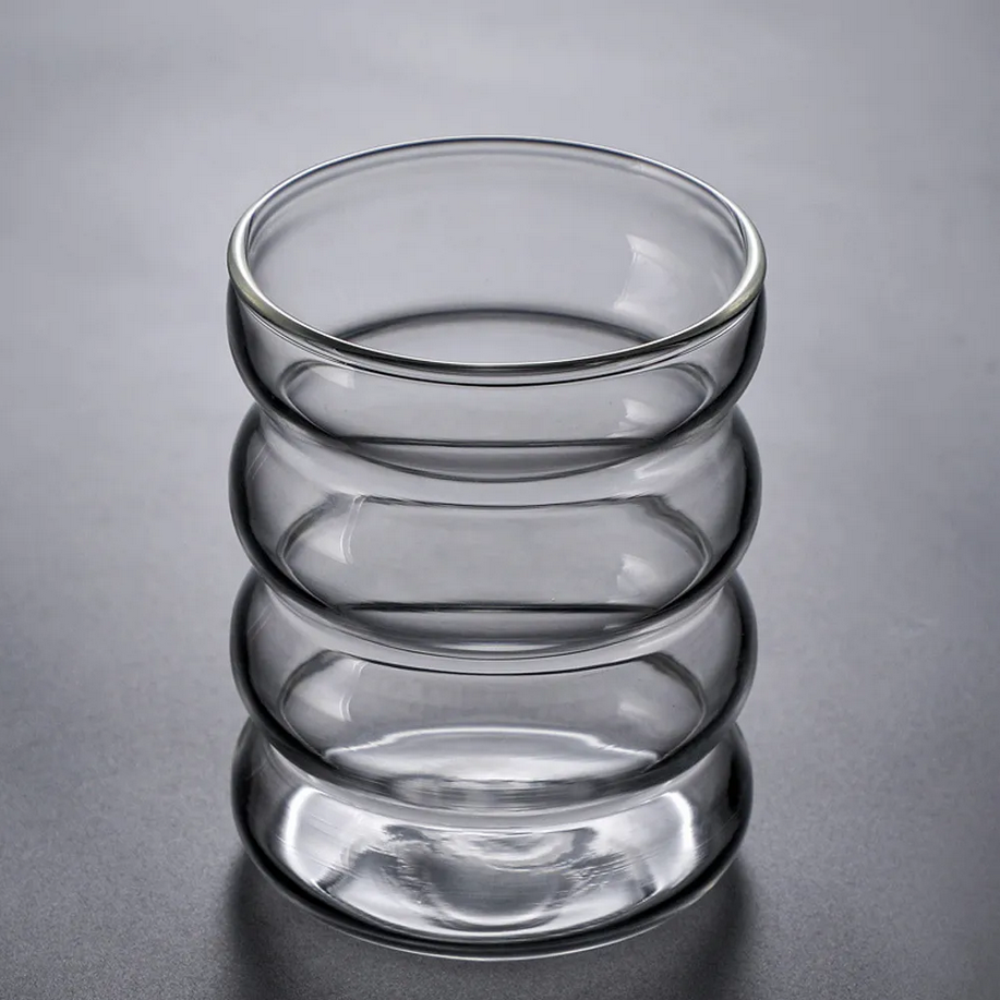 „Ribbon“ Trinkglas 1 Stück Volumen: ca. 300cc Durchmesser: ca. 7,5cm Höhe: ca. 10cm Material: Borosilikatglas Spülmaschinen geeignet