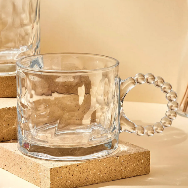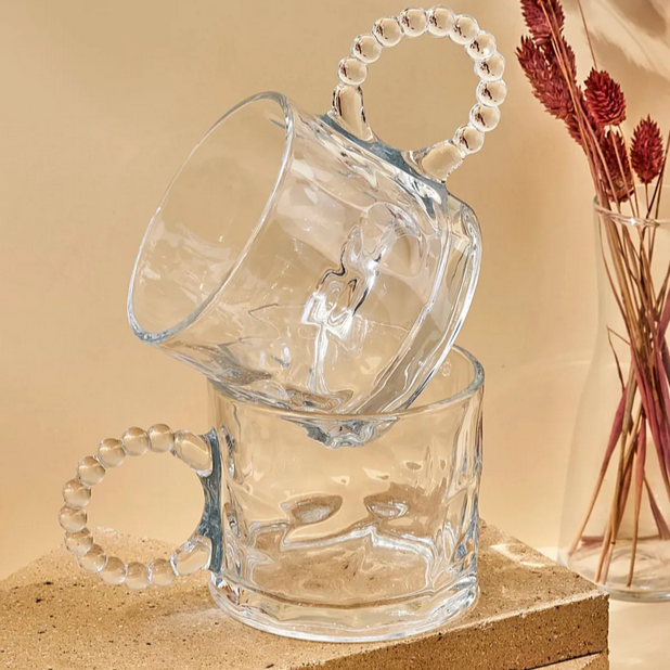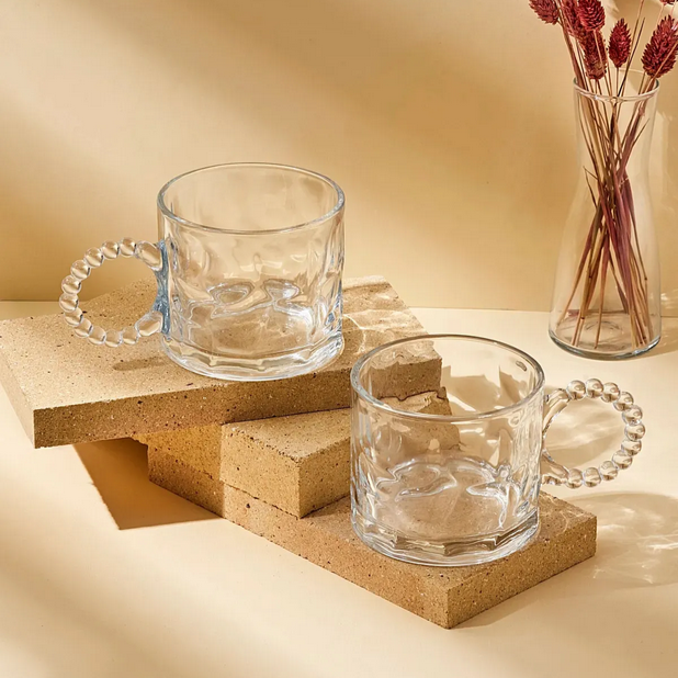 „Ringo Stone“ 2 Stück Volumen: ca. 325cc Durchmesser: inkl. Griff ca. 14cm Höhe: ca. 7,7cm Material: Glas Spülmaschinen geeignet