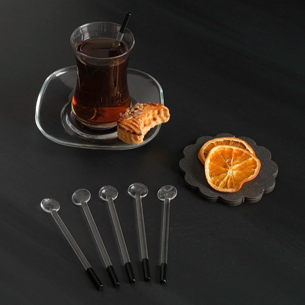 „Tea Time“ Teelöffel aus Glas 6 Stück Länge: ca. 11cm Material: Glas Farbe: Transparent/Schwarz nicht Spülmaschinen geeignet